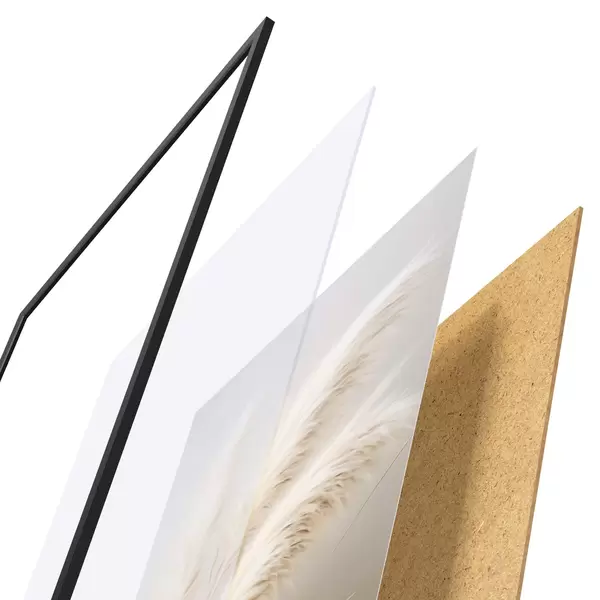 Il poster è composto da cornice, plexiglass, immagine stampata e supporto in truciolato. Il poster può essere immediatamente appeso alla parete grazie ai supporti sul retro.