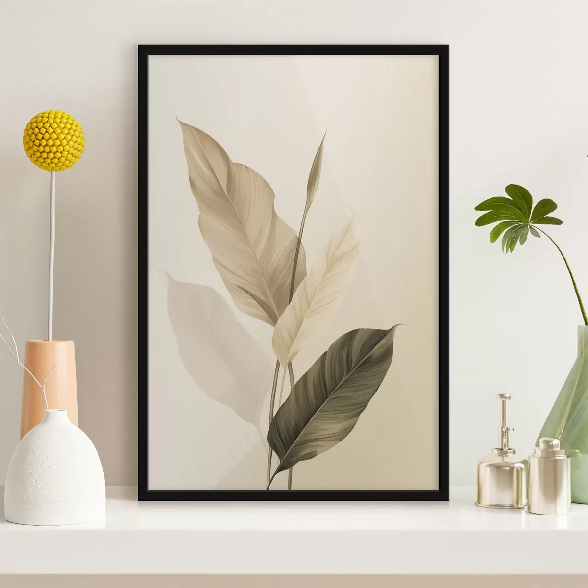 Poster Grandi foglie tropicali nei toni del beige e del marrone, su uno sfondo chiaro f48725