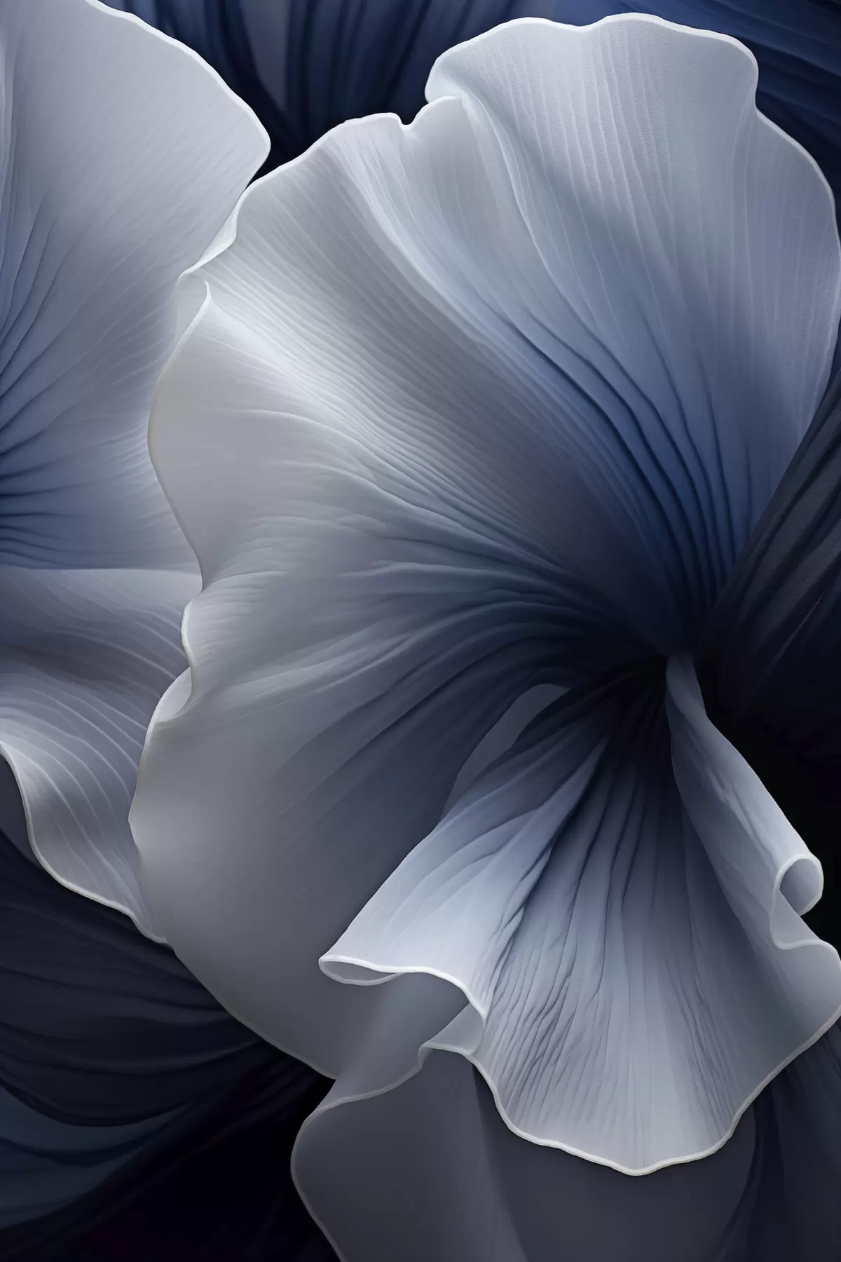 Poster Petali di fiori astratti blu e bianchi su sfondo scuro Nr f48731