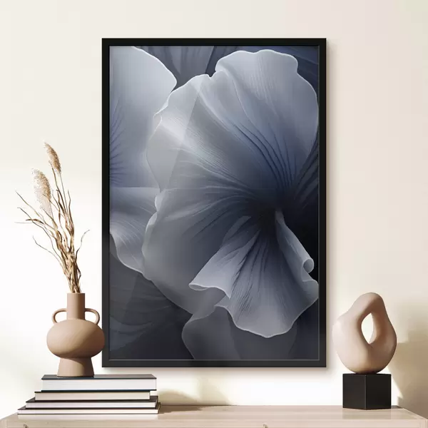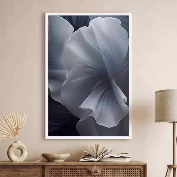 Poster Petali di fiori astratti blu e bianchi su sfondo scuro f48731