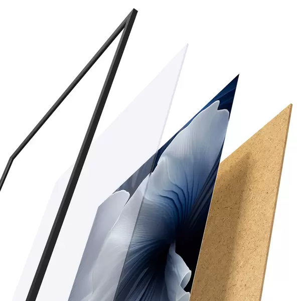 Il poster è composto da cornice, plexiglass, immagine stampata e supporto in truciolato. Il poster può essere immediatamente appeso alla parete grazie ai supporti sul retro.