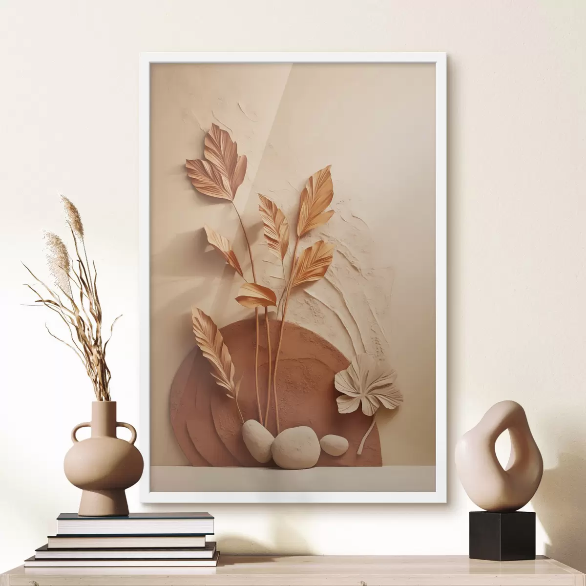 Poster Un'opera d'arte minimalista con fiori secchi ed erba della pampa, su uno sfondo materico f48740