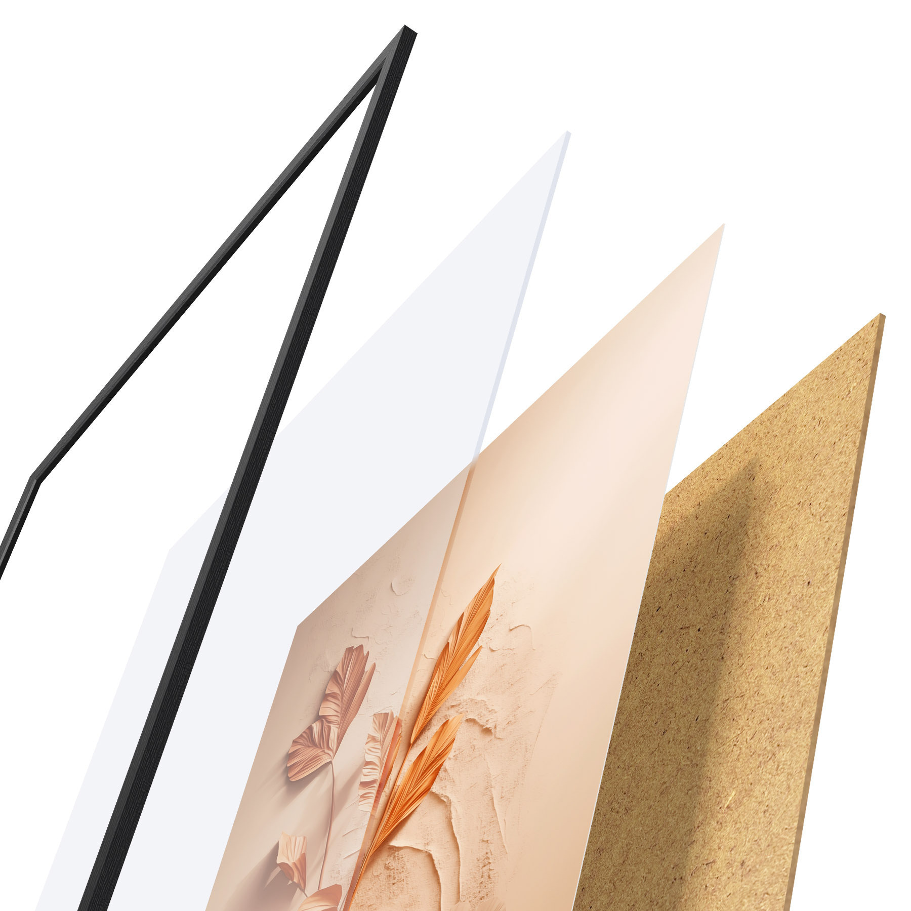 Il poster è composto da cornice, plexiglass, immagine stampata e supporto in truciolato. Il poster può essere immediatamente appeso alla parete grazie ai supporti sul retro.