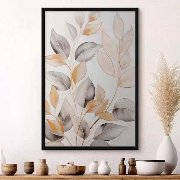 Poster Foglie grandi e traslucide nei toni del grigio e del giallo Nr f48746