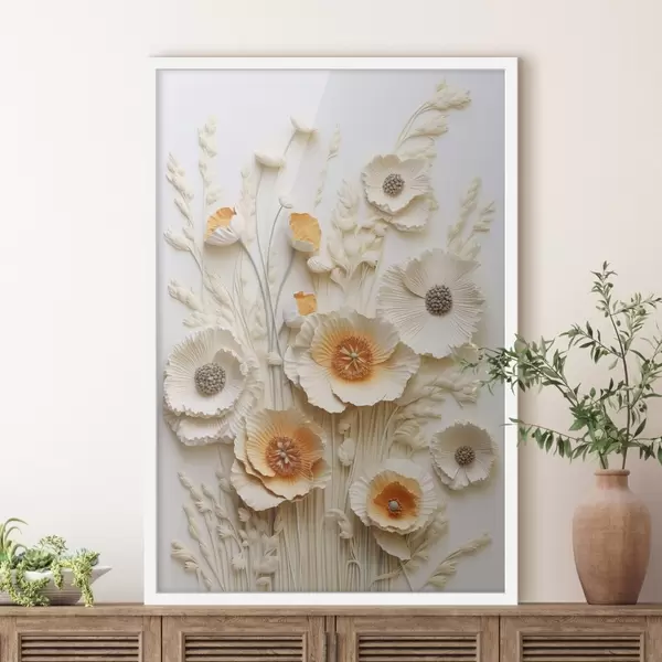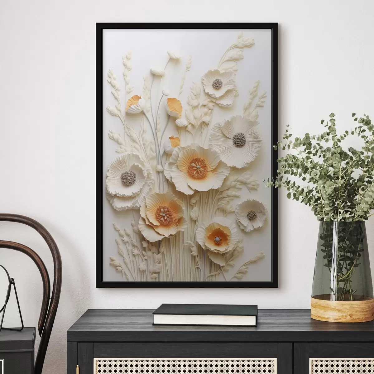 Poster Un bouquet di papaveri color crema e arancione con steli di grano essiccato Nr f48747