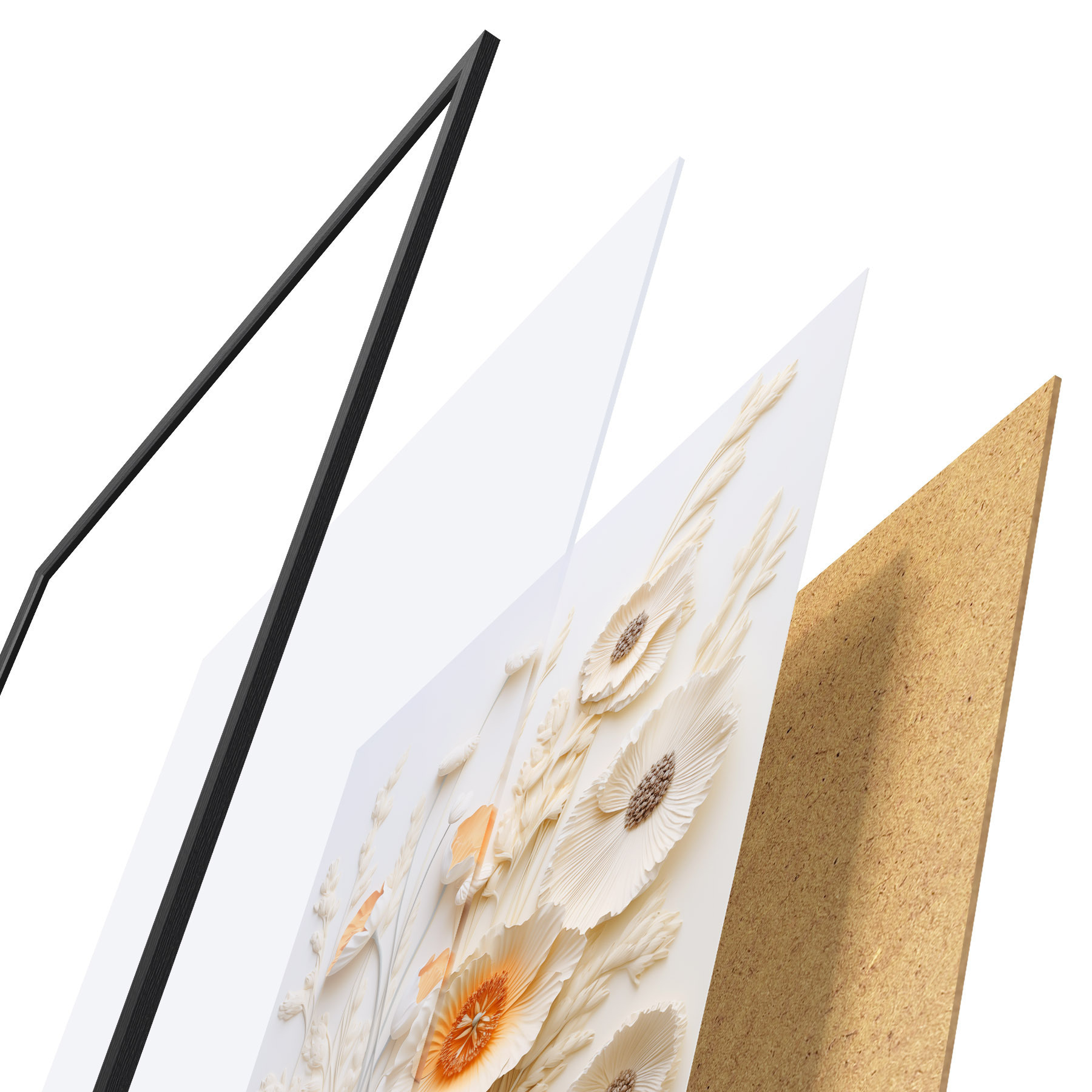 Il poster è composto da cornice, plexiglass, immagine stampata e supporto in truciolato. Il poster può essere immediatamente appeso alla parete grazie ai supporti sul retro.