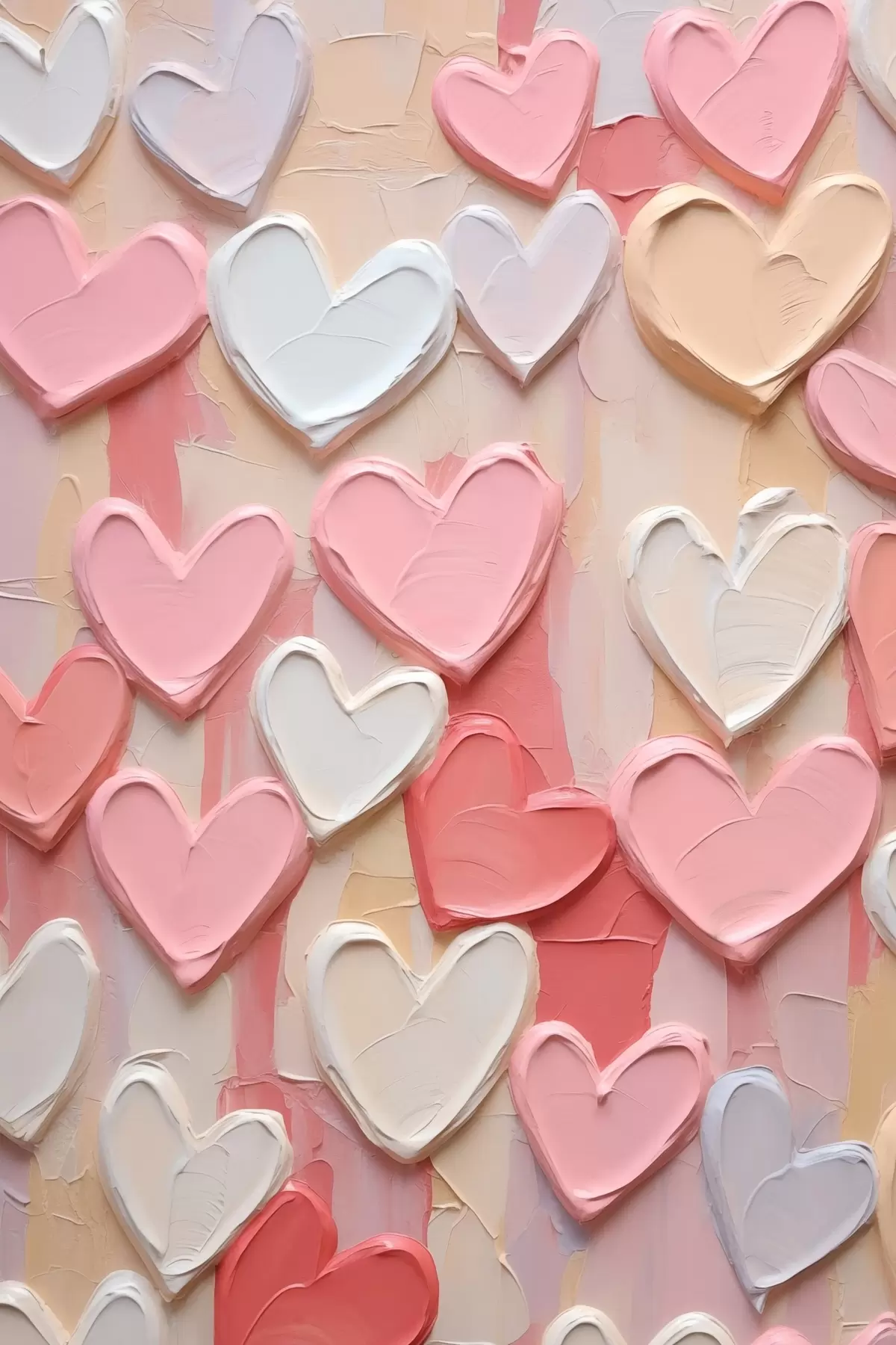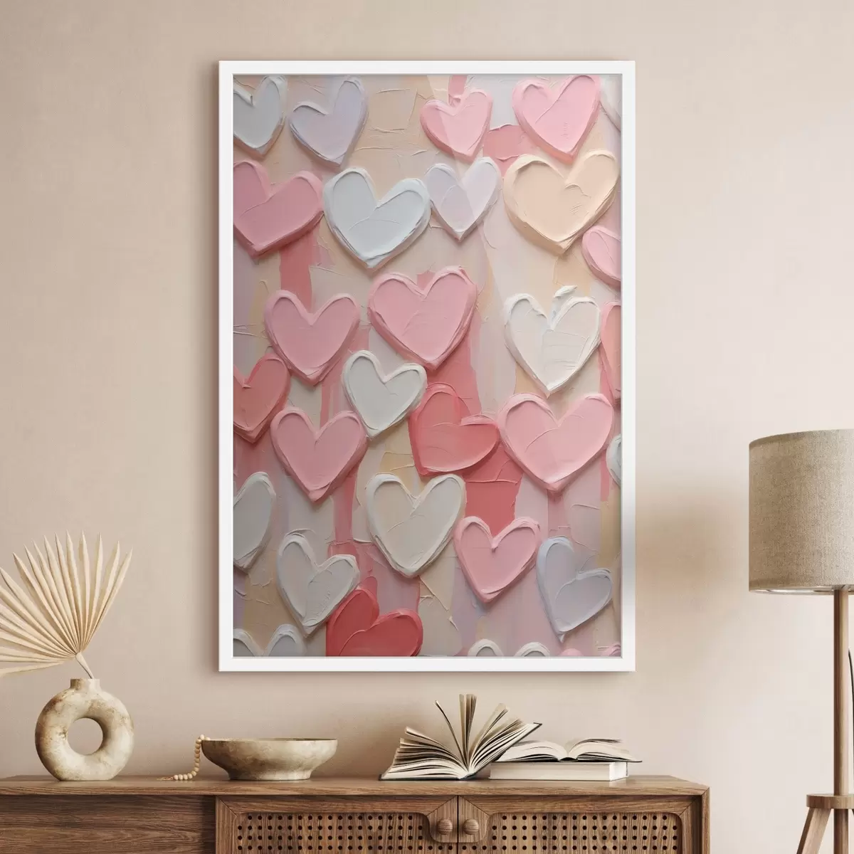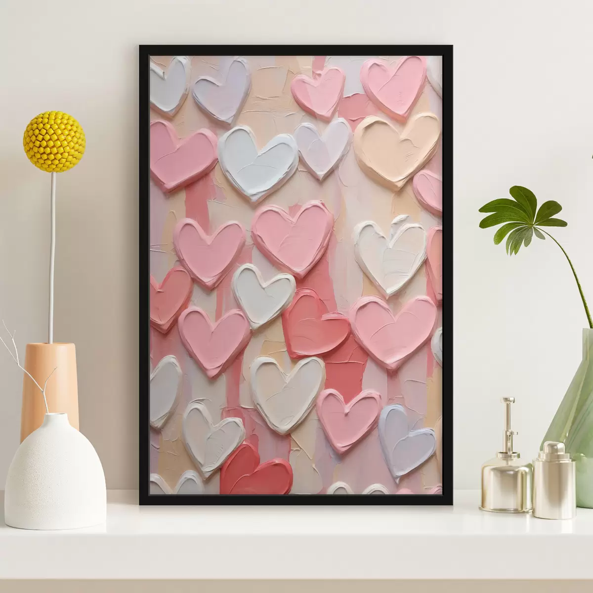 Poster Cuori in varie tonalità di pesca e rosa, realizzati con una tecnica pittorica a texture Nr f48751