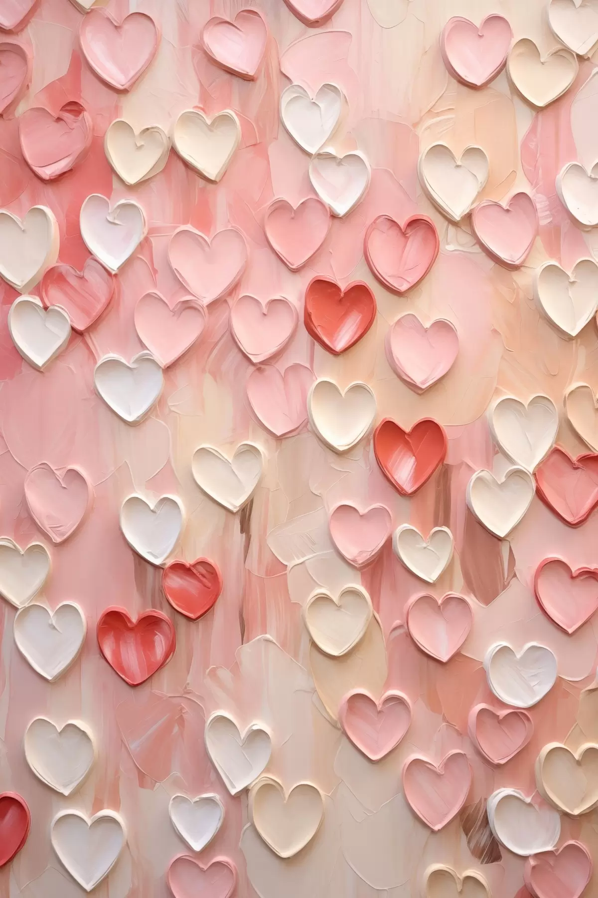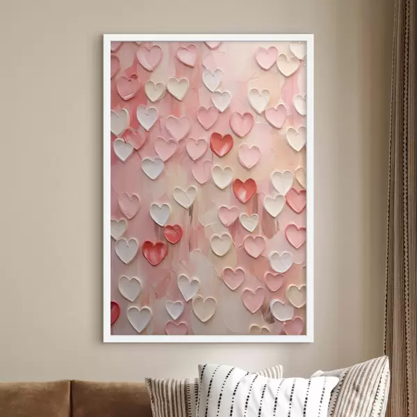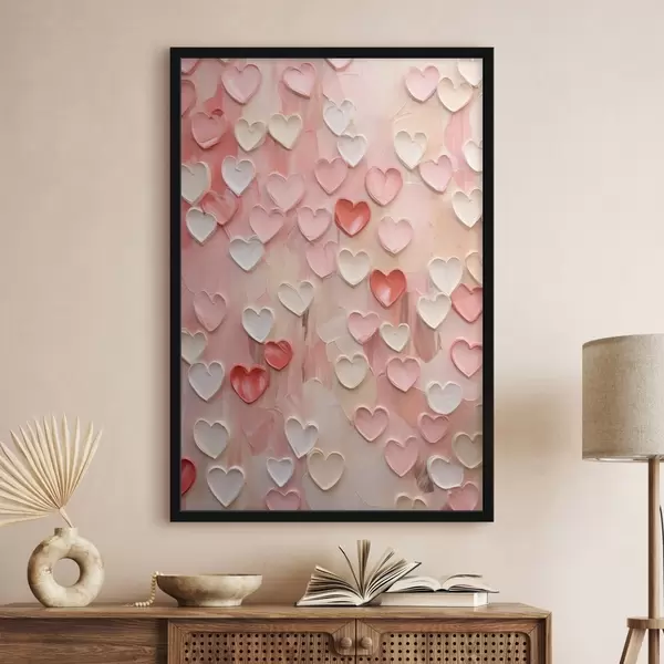 Poster Cuori in varie tonalità di pesca e rosa, realizzati con una tecnica pittorica a texture Nr f48752