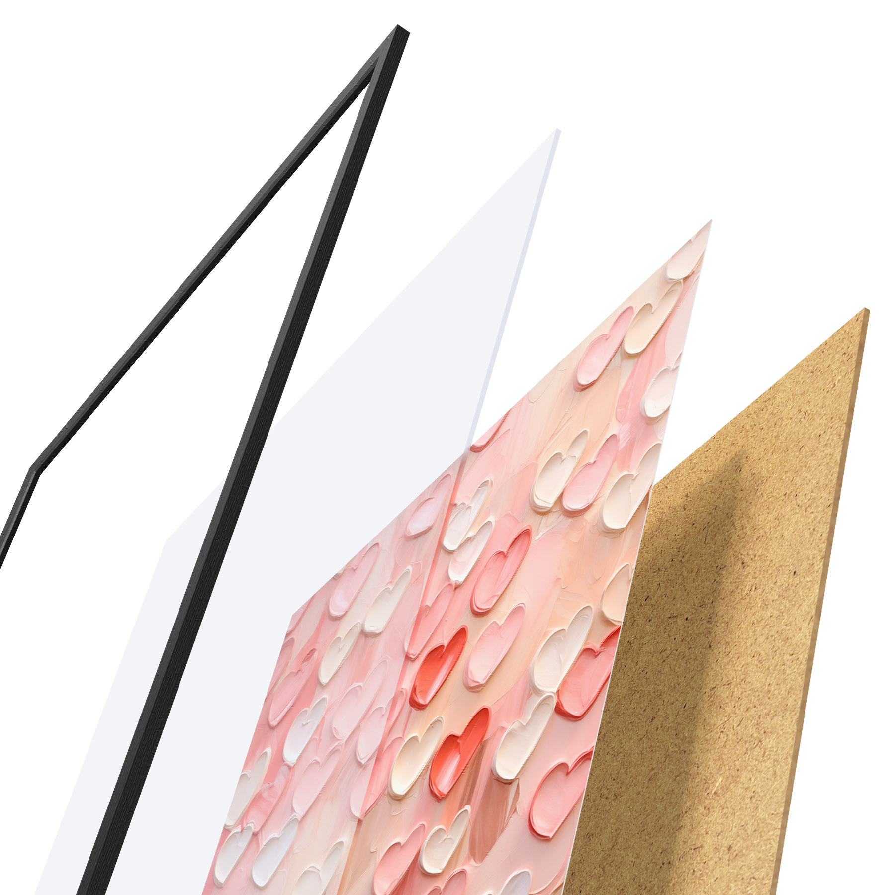 Poster Cuori in varie tonalità di pesca e rosa, realizzati con una tecnica pittorica a texture f48752