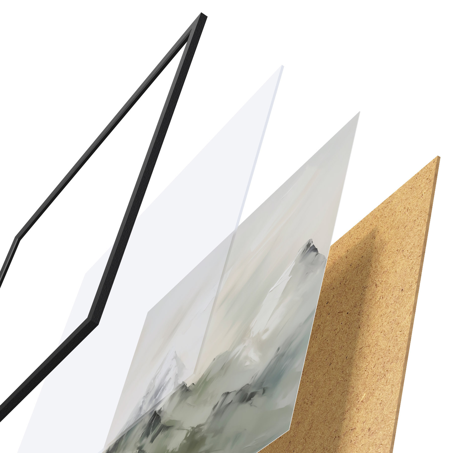 Il poster è composto da cornice, plexiglass, immagine stampata e supporto in truciolato. Il poster può essere immediatamente appeso alla parete grazie ai supporti sul retro.