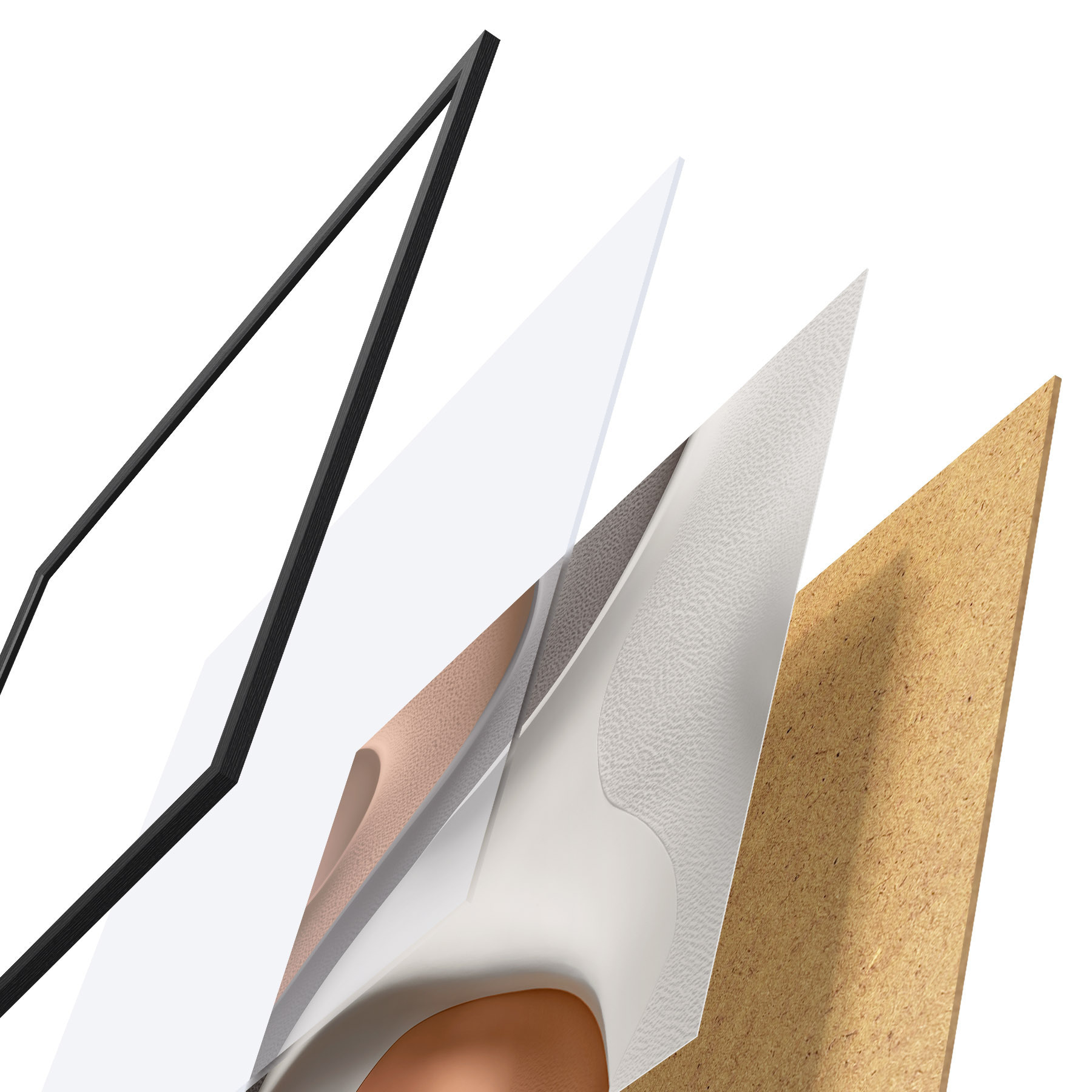 Il poster è composto da cornice, plexiglass, immagine stampata e supporto in truciolato. Il poster può essere immediatamente appeso alla parete grazie ai supporti sul retro.
