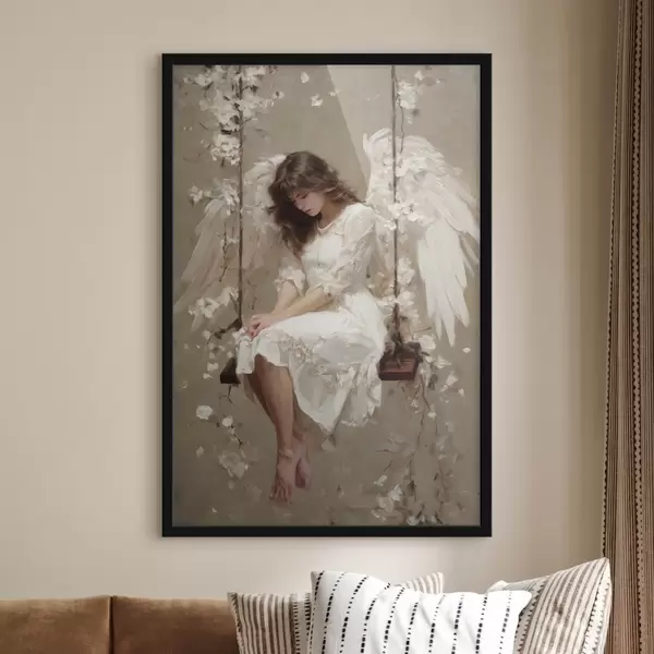 Poster una bambina angelica su un'altalena, dipinta in stile ad olio f48789