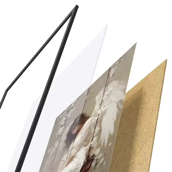 Il poster è composto da cornice, plexiglass, immagine stampata e supporto in truciolato. Il poster può essere immediatamente appeso alla parete grazie ai supporti sul retro.