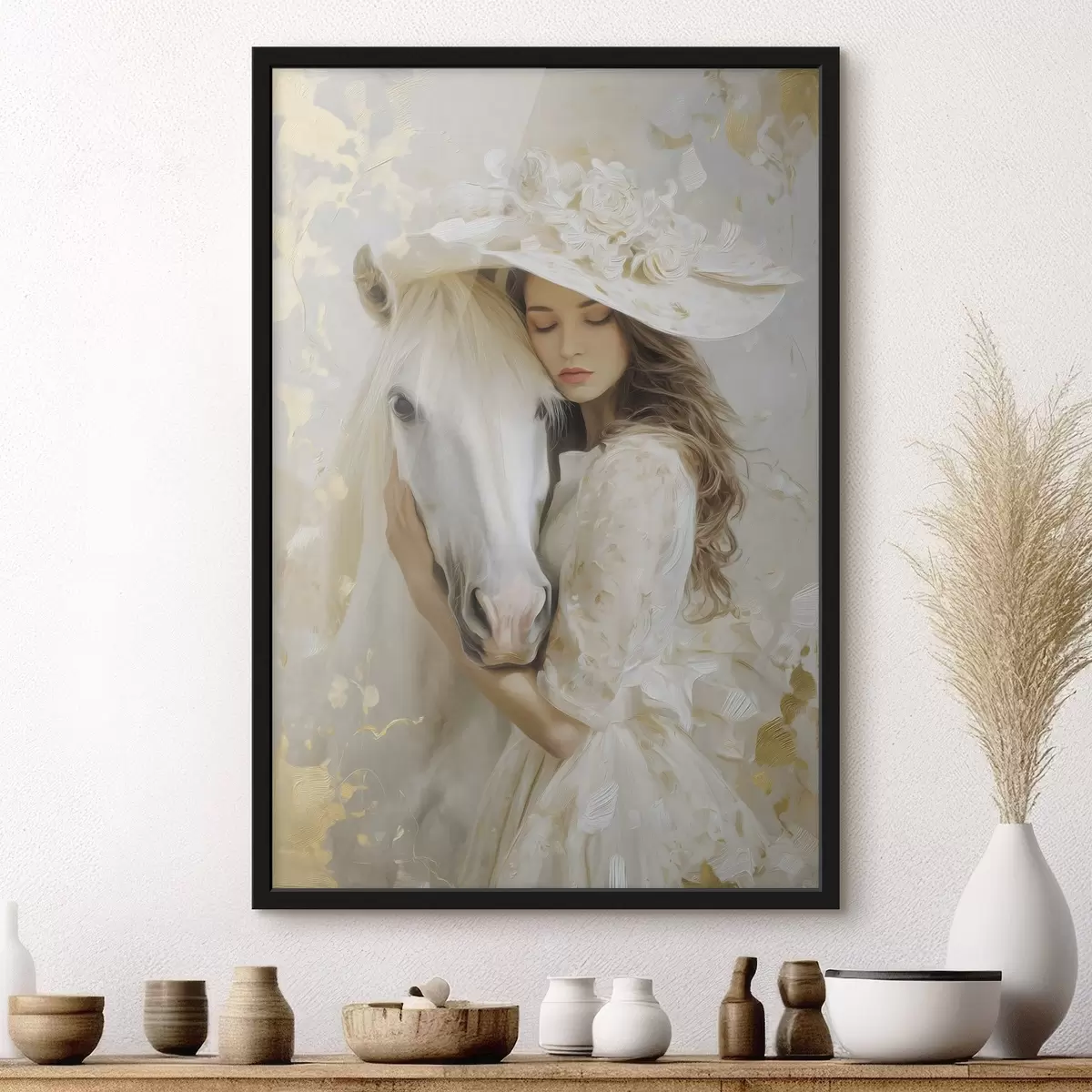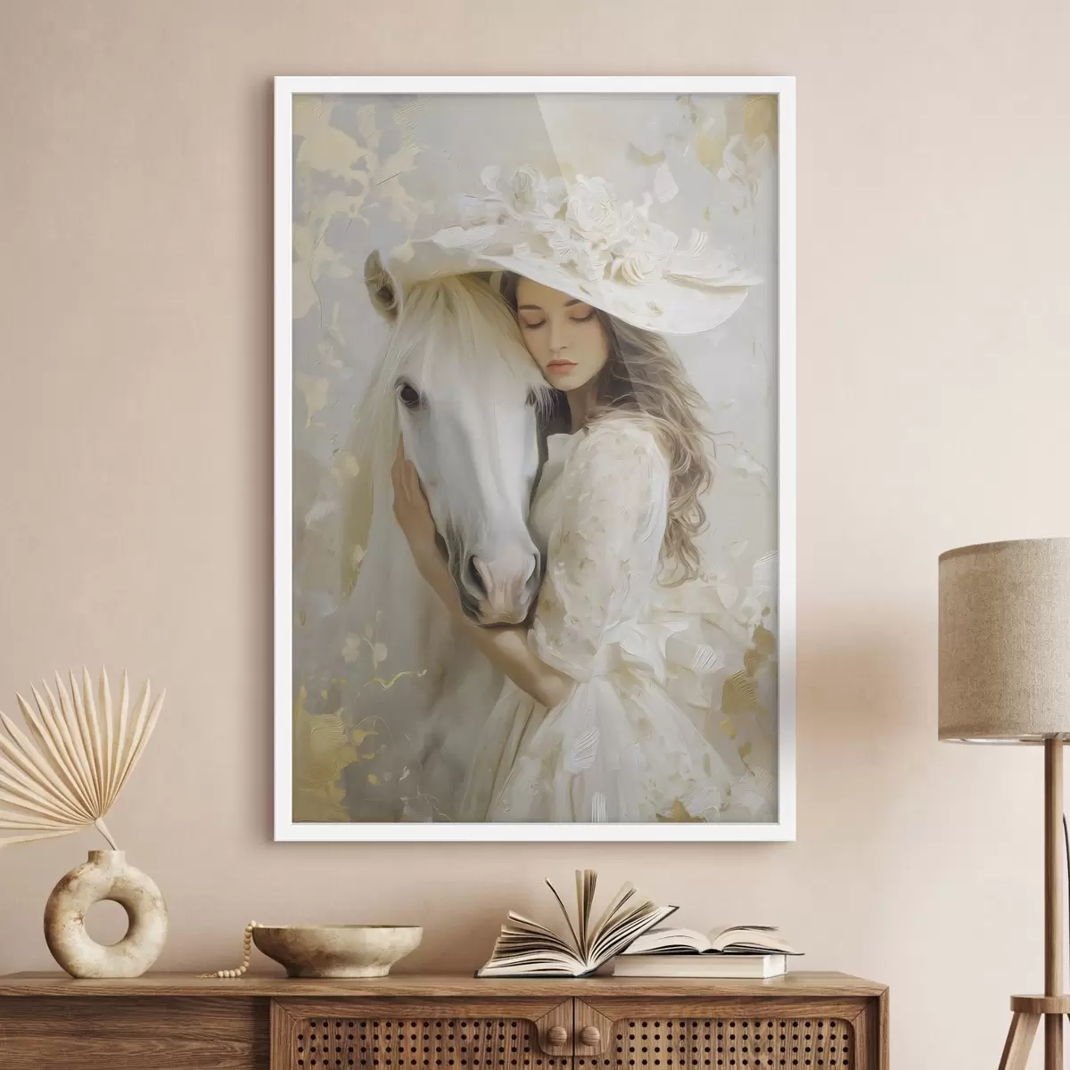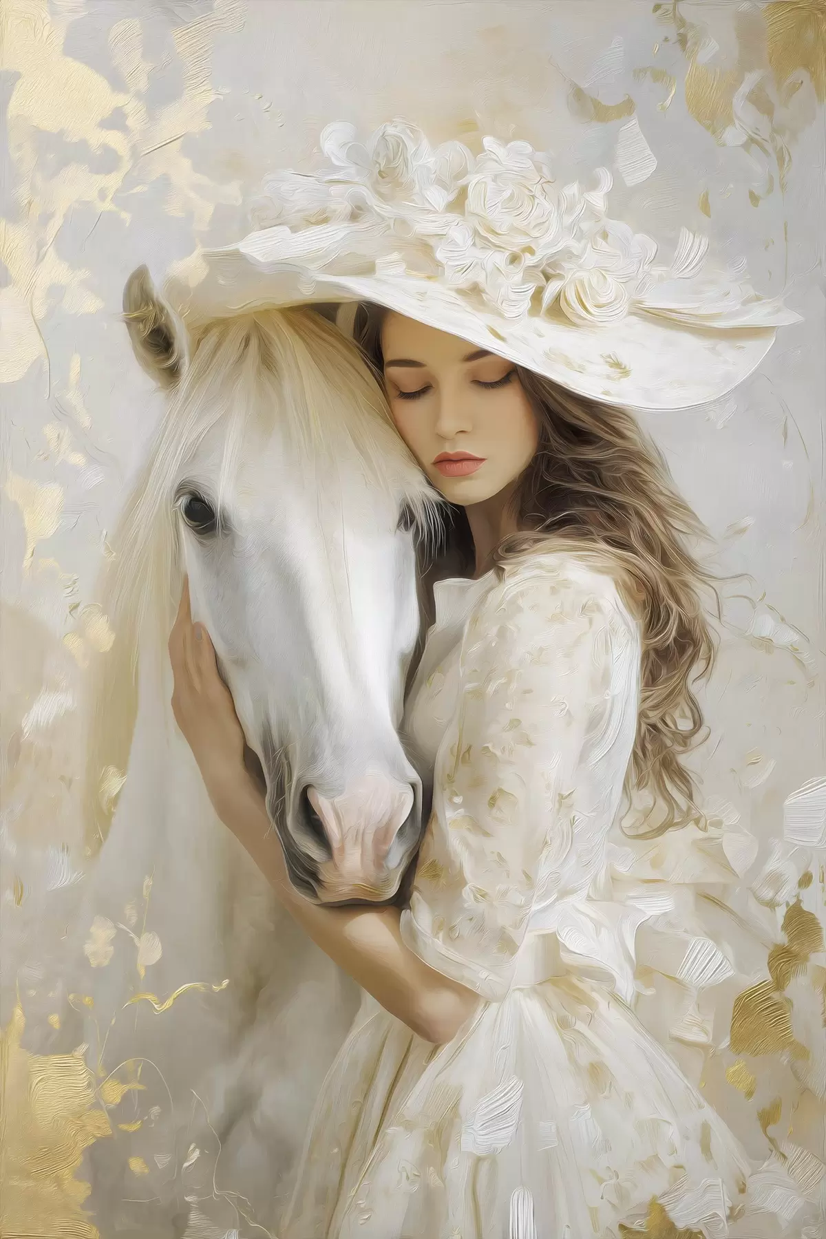 Poster una ragazza con un cavallo bianco, dipinta in stile oil painting f48790