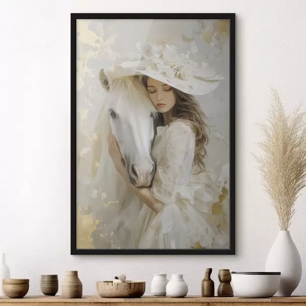 Poster una ragazza con un cavallo bianco, dipinta in stile oil painting Nr f48790