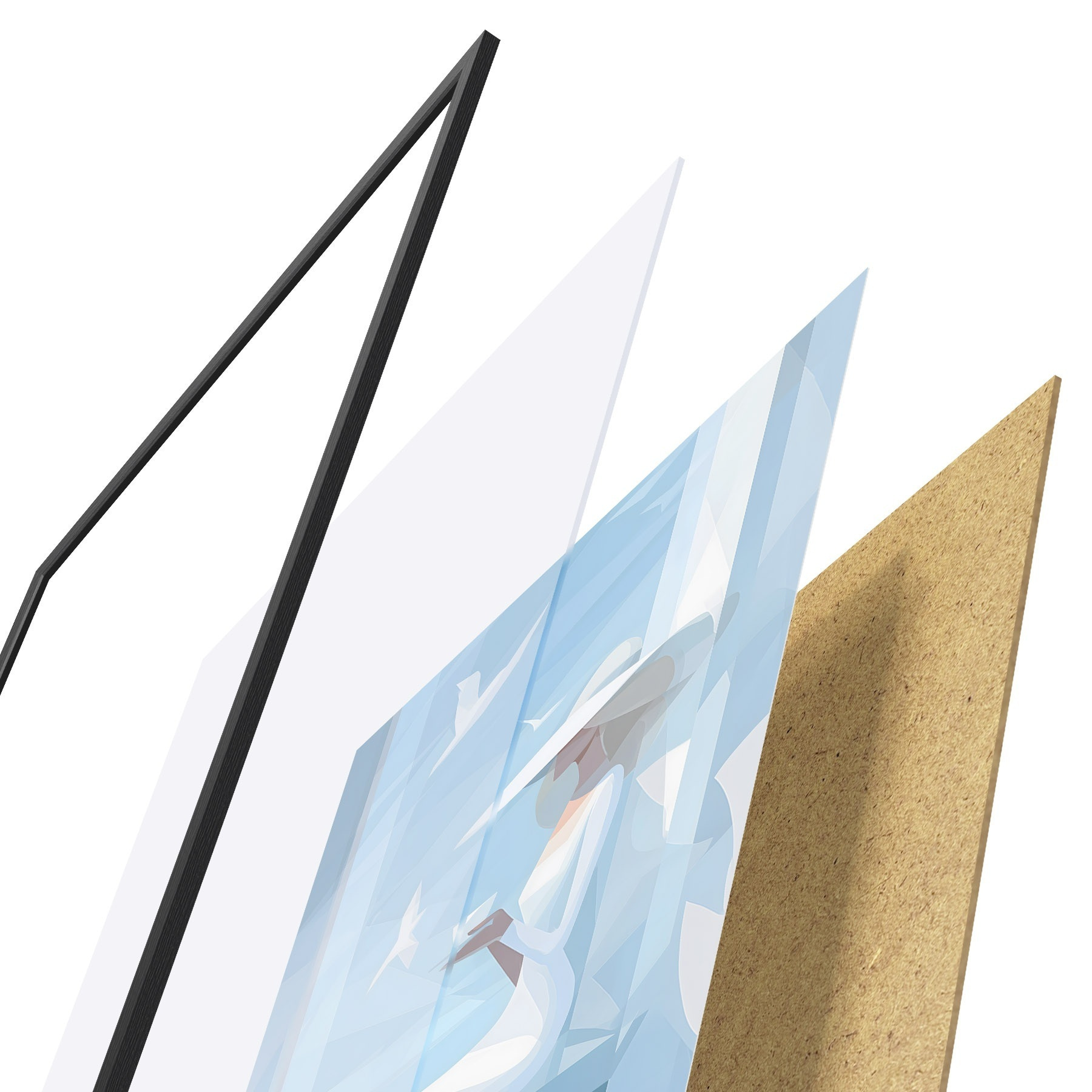 Il poster è composto da cornice, plexiglass, immagine stampata e supporto in truciolato. Il poster può essere immediatamente appeso alla parete grazie ai supporti sul retro.