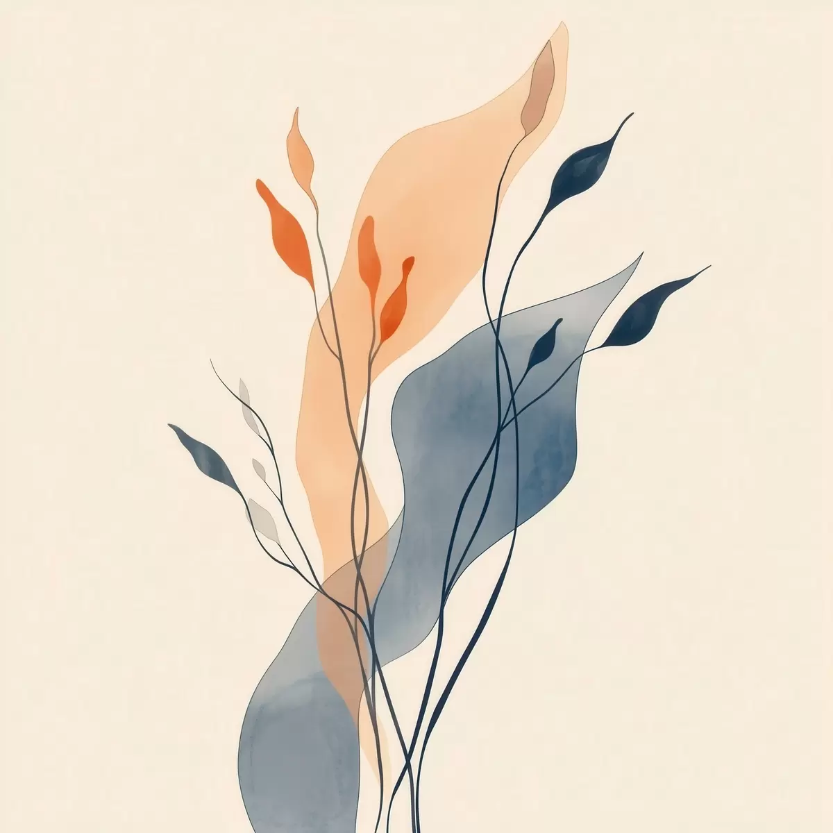 Poster Composizione con sagome vegetali espressive in stile illustrazione artistica f48838
