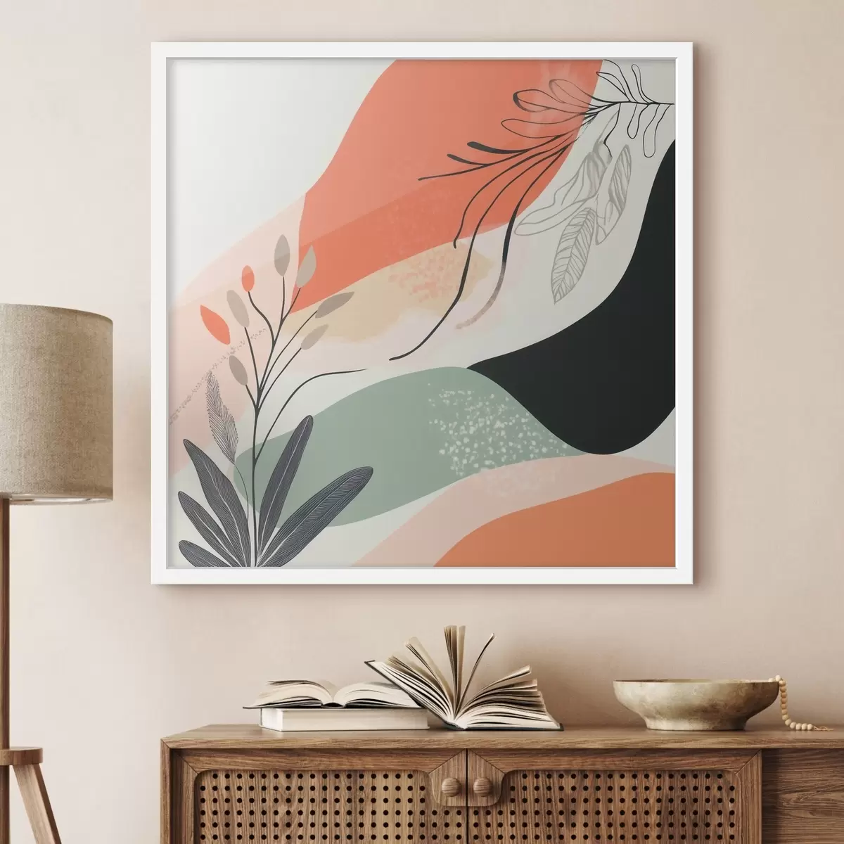 Poster Motivi vegetali stilizzati su uno sfondo di macchie acquerellate f48839