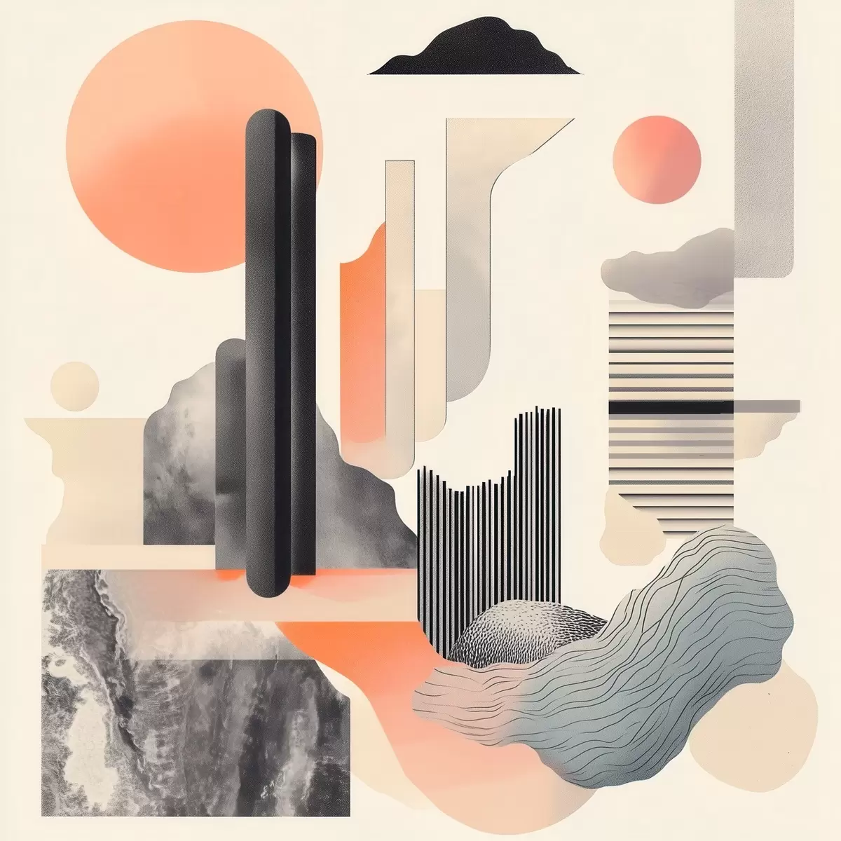 Poster Composizione geometrica in una palette dai toni pesca e grigio, in uno stile pittorico contemporaneo Nr f48841