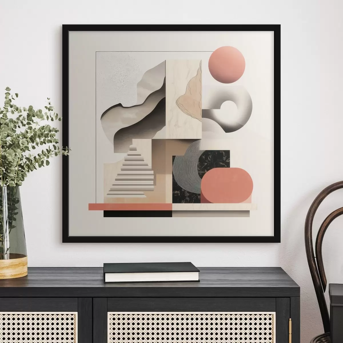 Poster Forme astratte in una palette di colori beige-grigio, in uno stile pittorico contemporaneo f48842