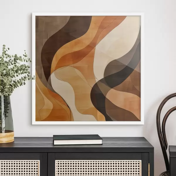 Poster Composizione astratta con linee ondulate dinamiche in una palette di colori terra cotta Nr f48851