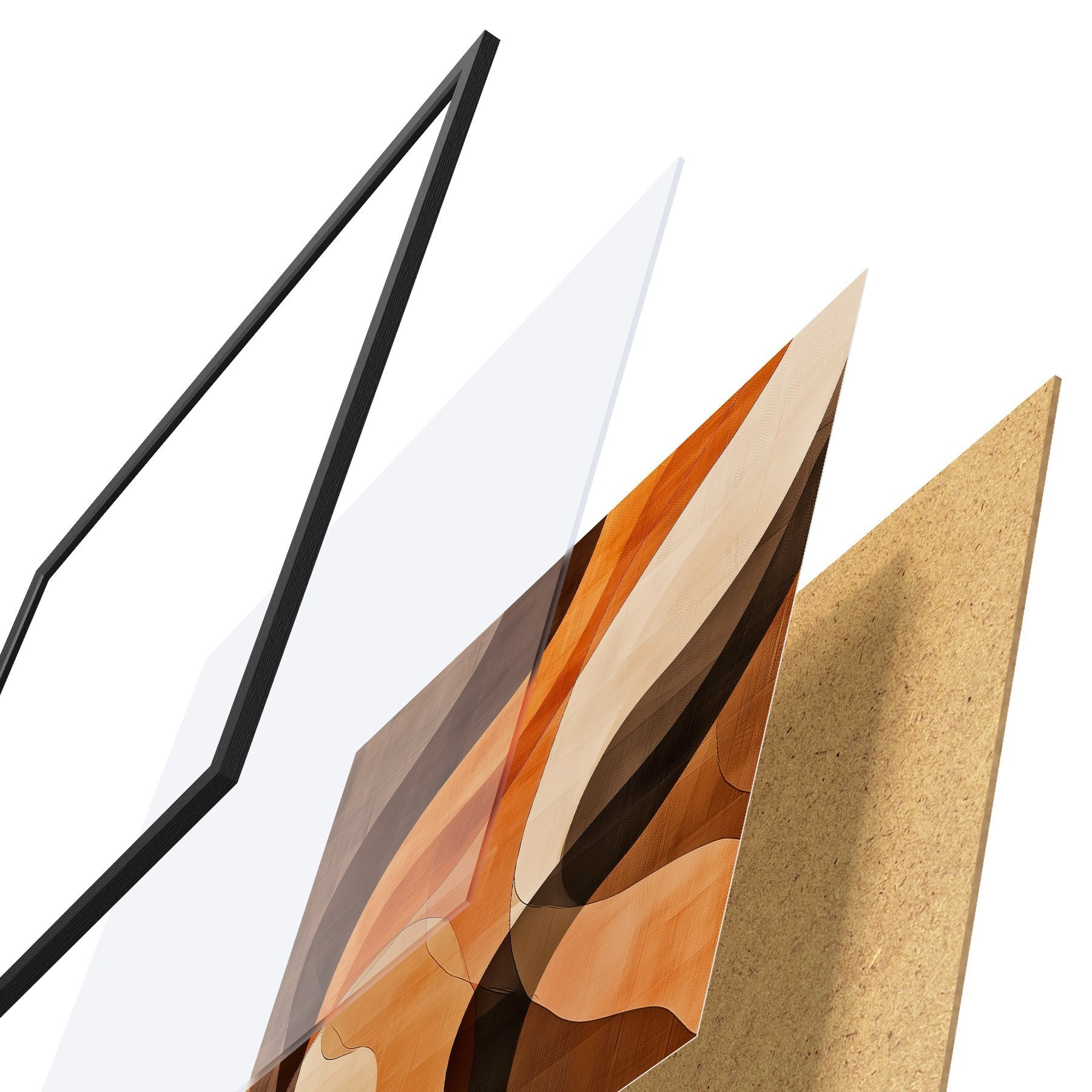 Il poster è composto da cornice, plexiglass, immagine stampata e supporto in truciolato. Il poster può essere immediatamente appeso alla parete grazie ai supporti sul retro.