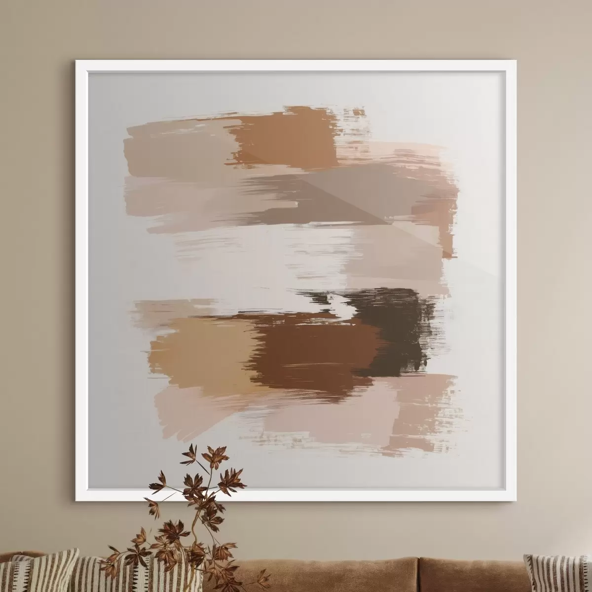 Poster Scena minimalista con pennellate orizzontali nei toni del caffè e della terracotta f48858