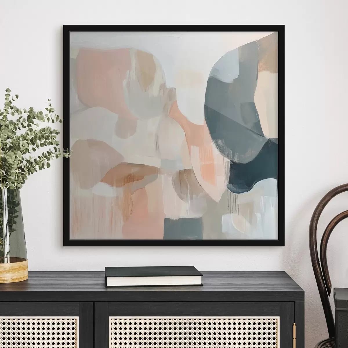 Poster Composizione astratta realizzata con colori pastello e tonalità di blu scuro in uno stile pittorico contemporaneo Nr f48860