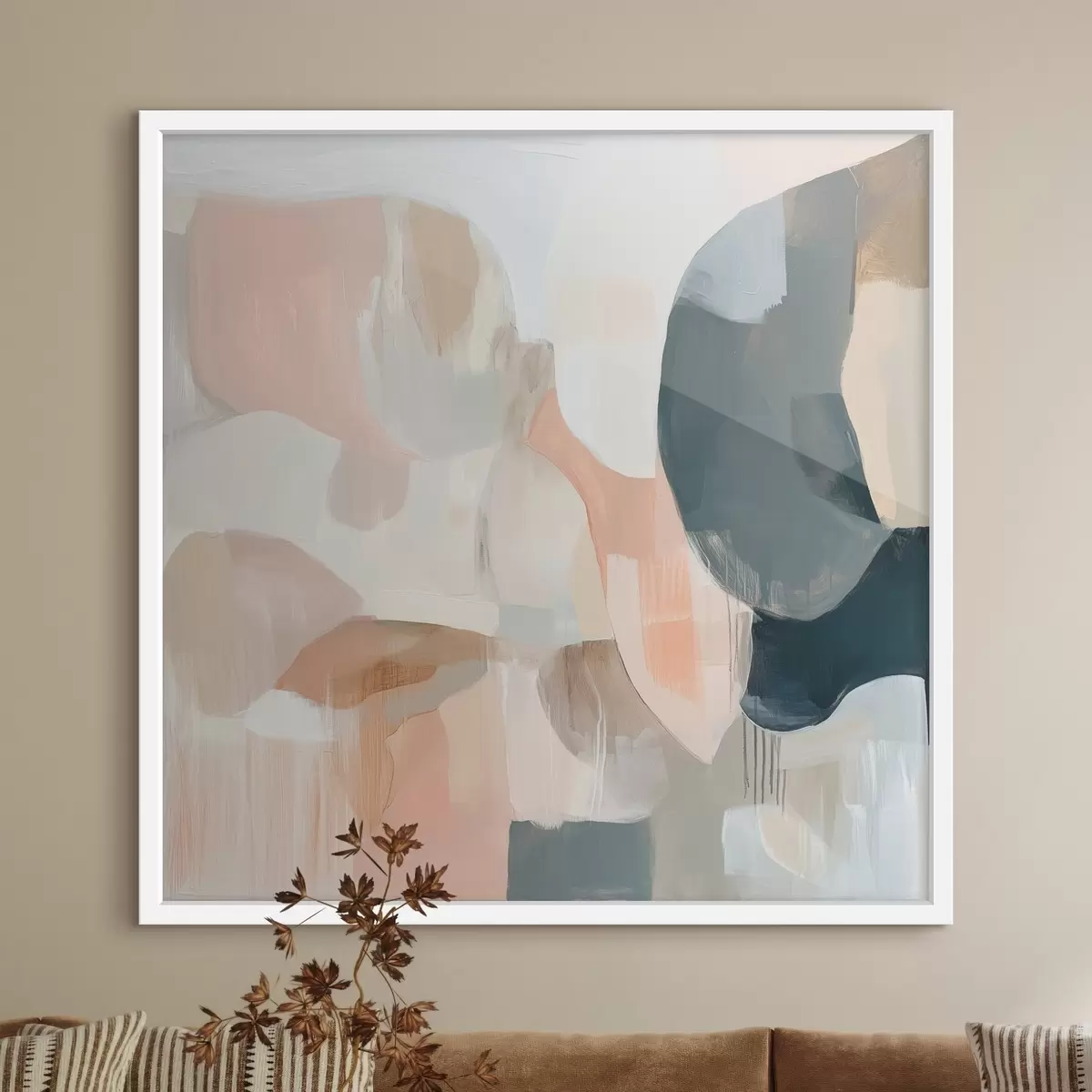 Poster Composizione astratta realizzata con colori pastello e tonalità di blu scuro in uno stile pittorico contemporaneo f48860