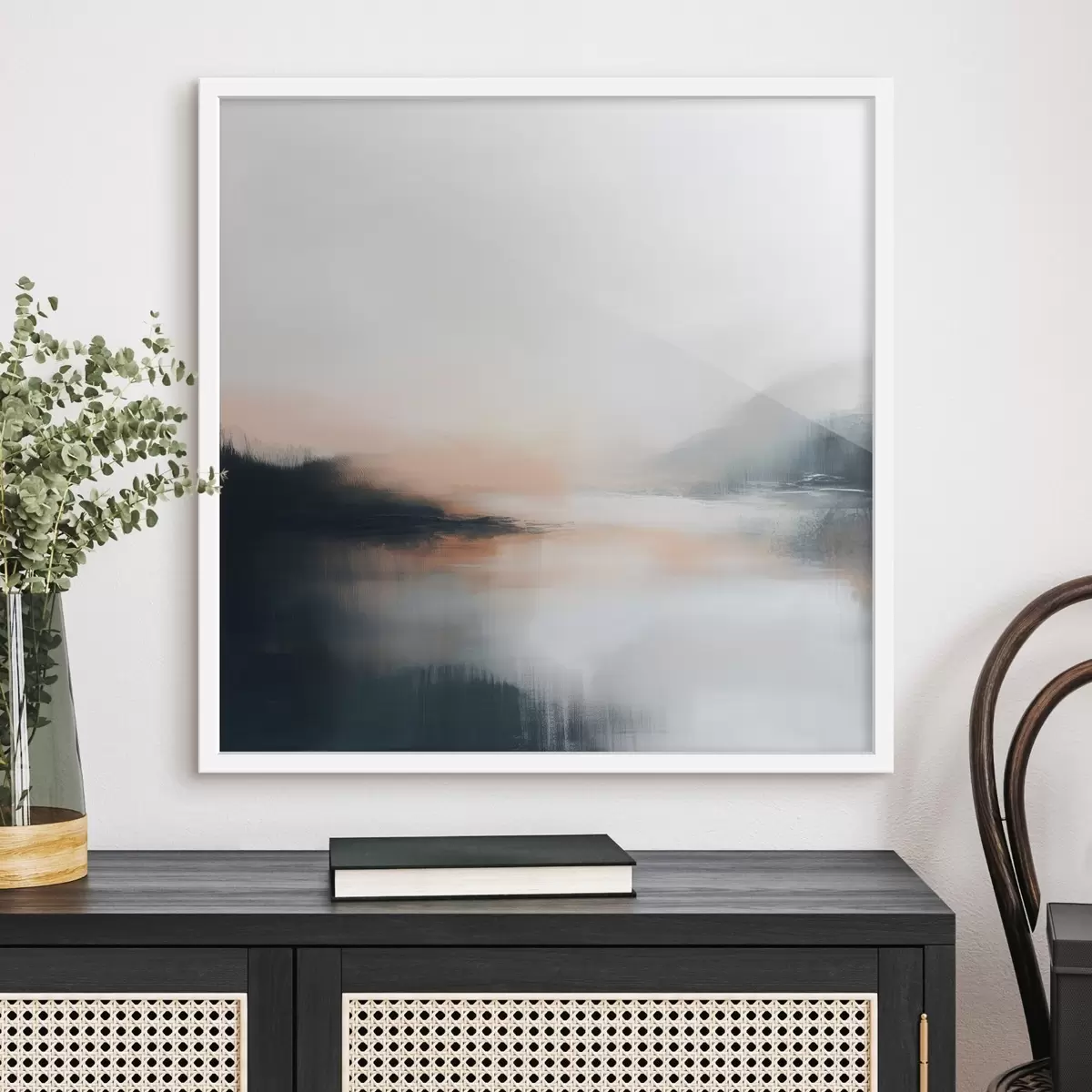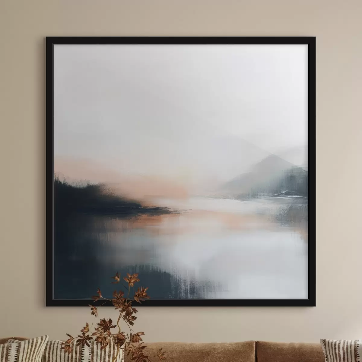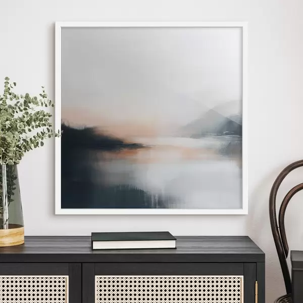 Poster Paesaggio astratto e nebbioso in una calda palette di colori beige e corallo Nr f48861