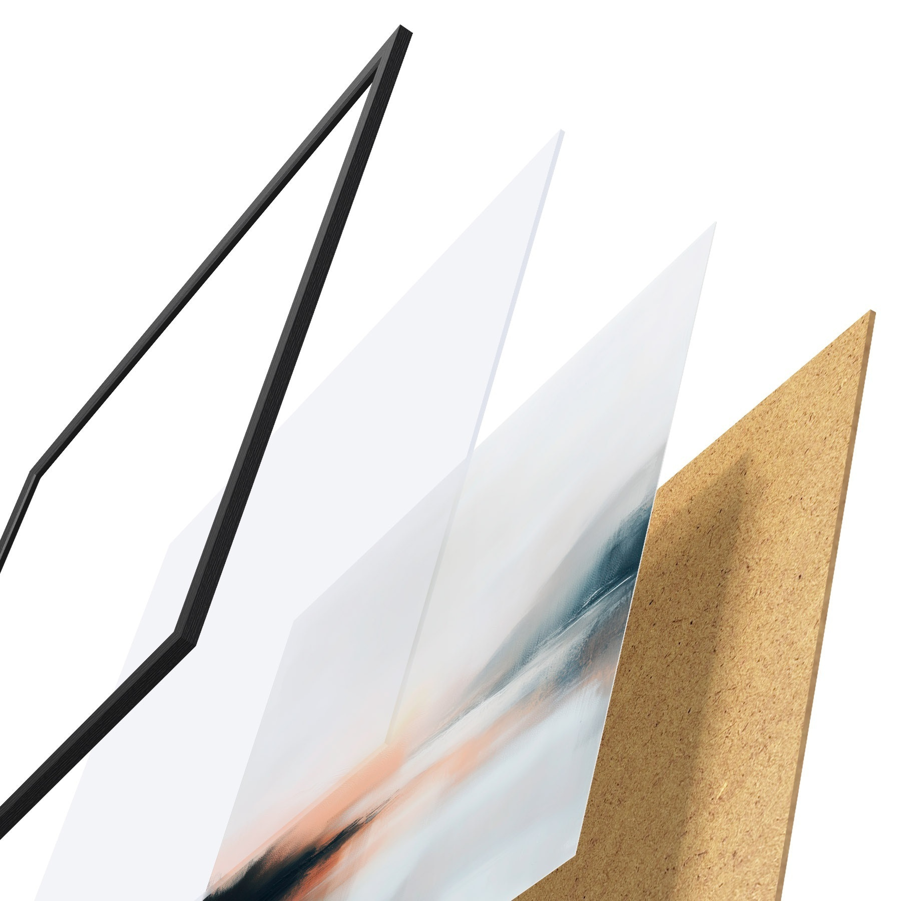 Il poster è composto da cornice, plexiglass, immagine stampata e supporto in truciolato. Il poster può essere immediatamente appeso alla parete grazie ai supporti sul retro.