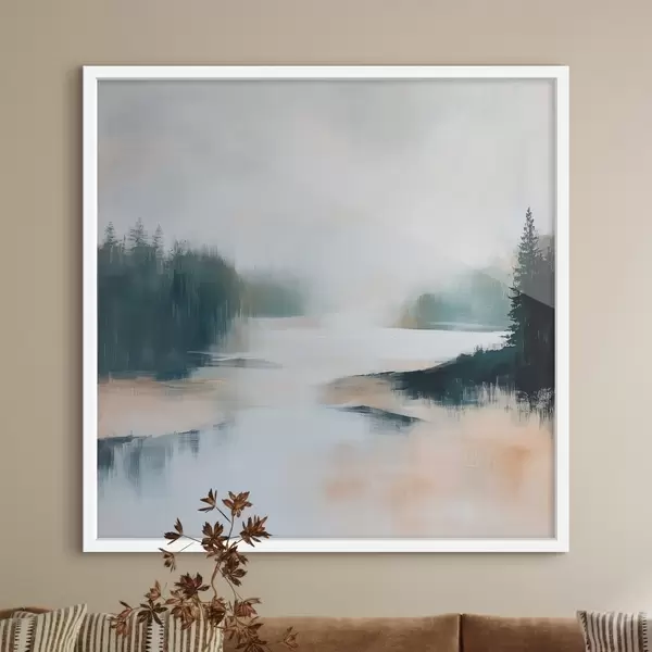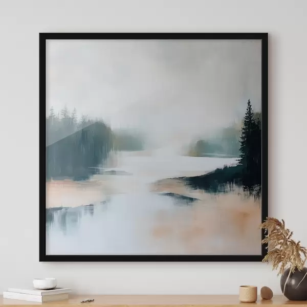 Poster Paesaggio boschivo astratto dai toni rosa e blu, realizzato in stile pittorico contemporaneo Nr f48862