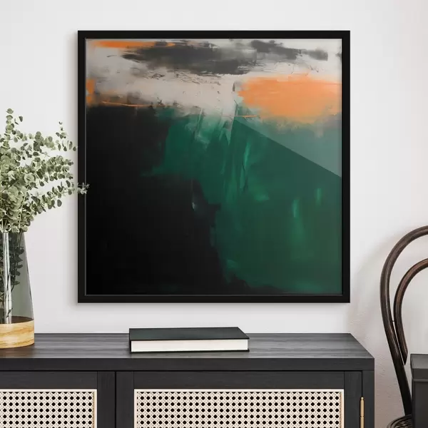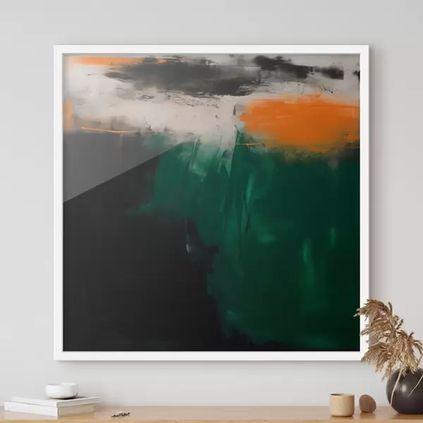 Poster Un'opera astratta caratterizzata da accenti arancioni e pennellate di verde intenso, realizzata in uno stile pittorico contemporaneo Nr f48865