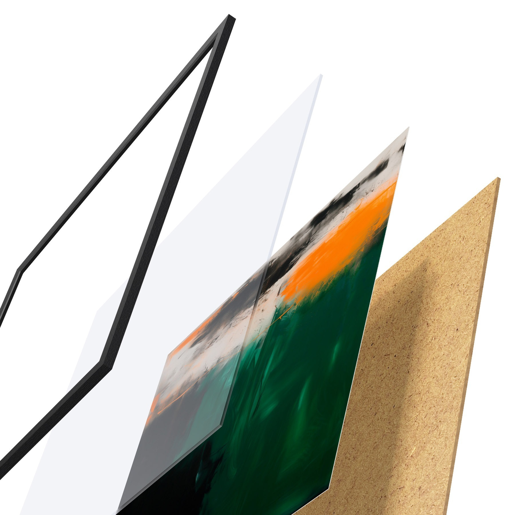 Il poster è composto da cornice, plexiglass, immagine stampata e supporto in truciolato. Il poster può essere immediatamente appeso alla parete grazie ai supporti sul retro.