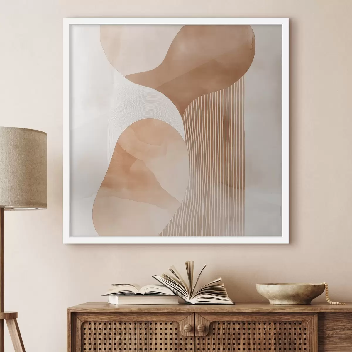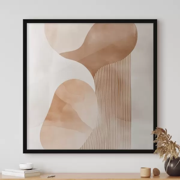 Poster Arte decorativa in una calda palette di colori beige-corallo con effetto acquerello Nr f48870