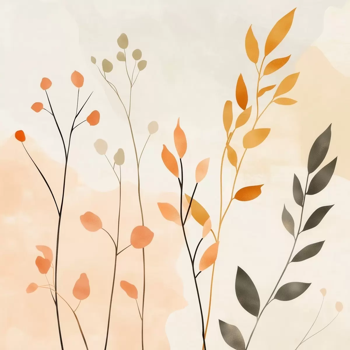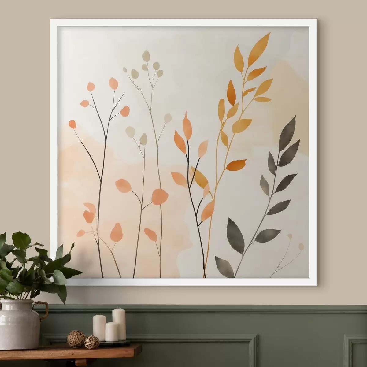 Poster Composizione dai toni pastello con fogliame delicato in uno stile pittorico contemporaneo Nr f48873