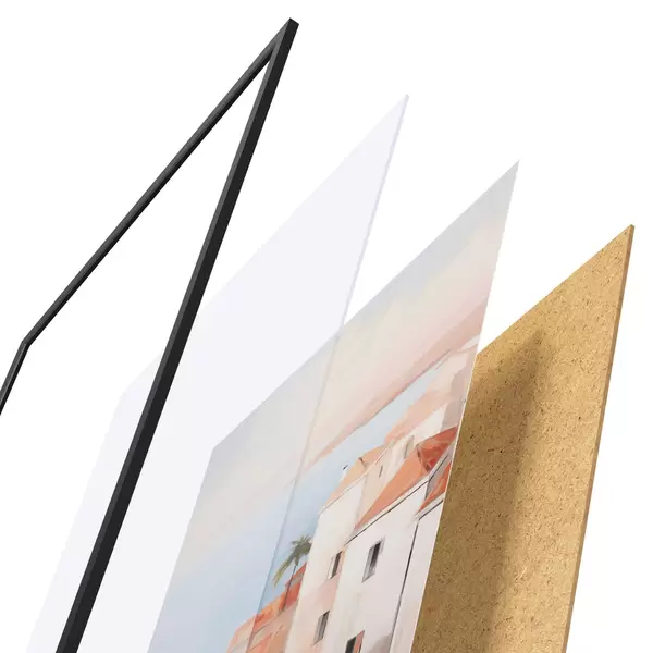 Il poster è composto da cornice, plexiglass, immagine stampata e supporto in truciolato. Il poster può essere immediatamente appeso alla parete grazie ai supporti sul retro.