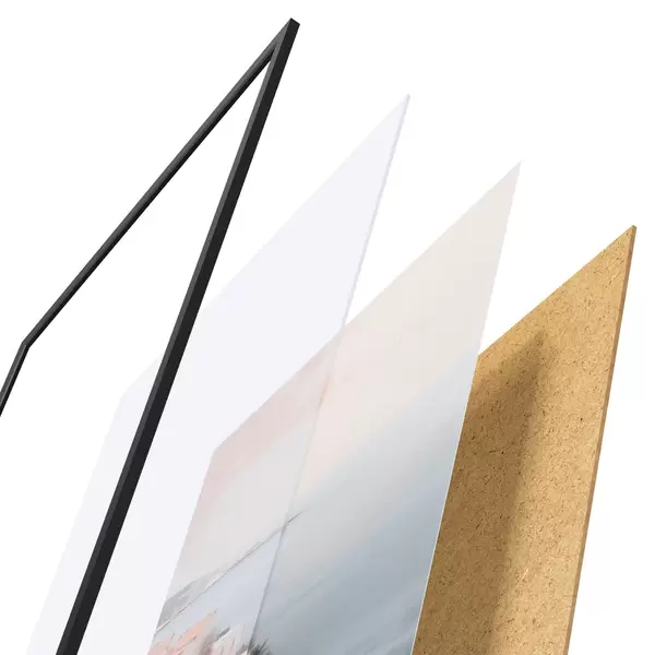 Il poster è composto da cornice, plexiglass, immagine stampata e supporto in truciolato. Il poster può essere immediatamente appeso alla parete grazie ai supporti sul retro.
