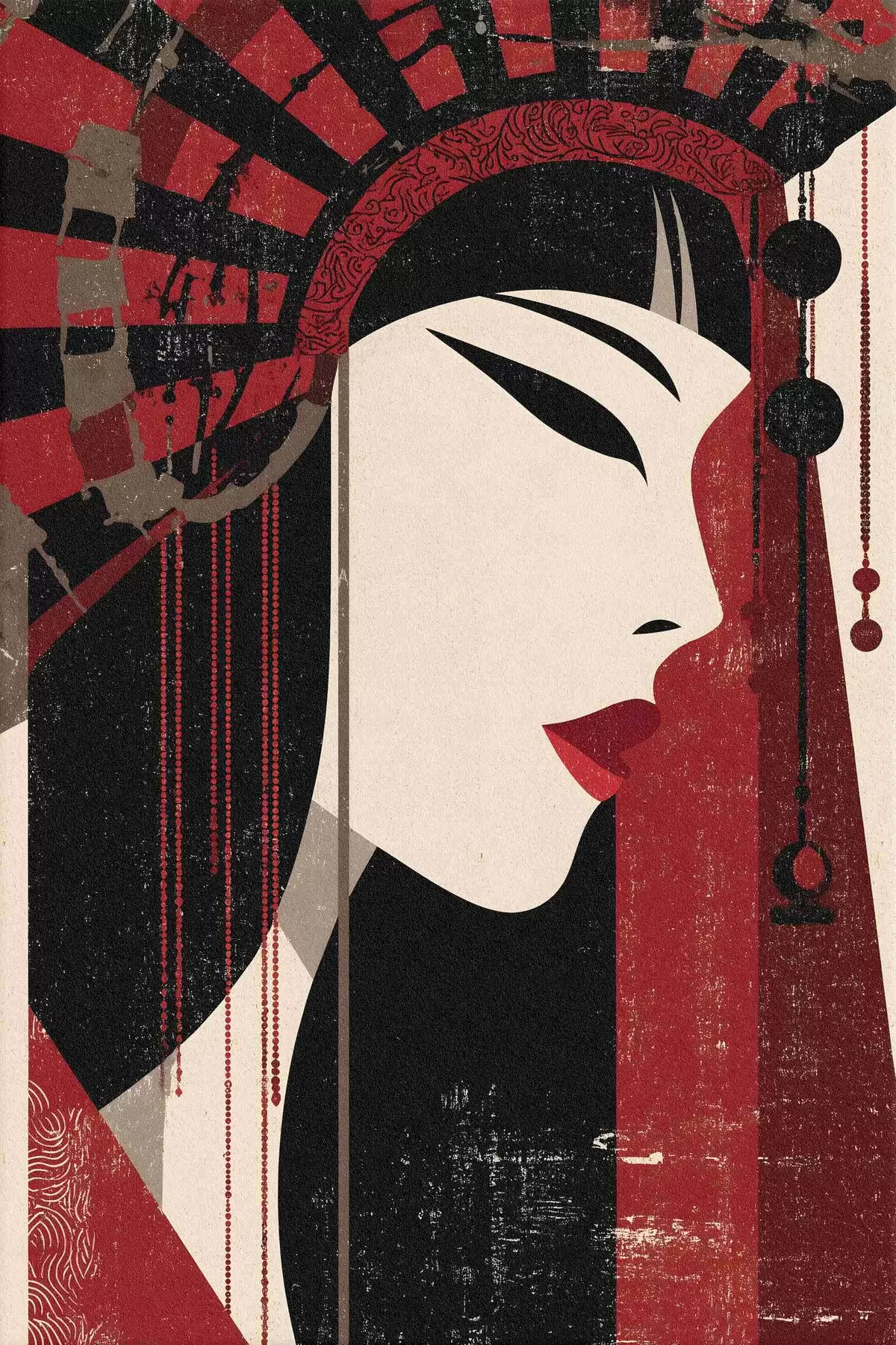 Poster Ritratto stilizzato di una donna, ispirato all'estetica giapponese e all'Art Déco Nr f48993