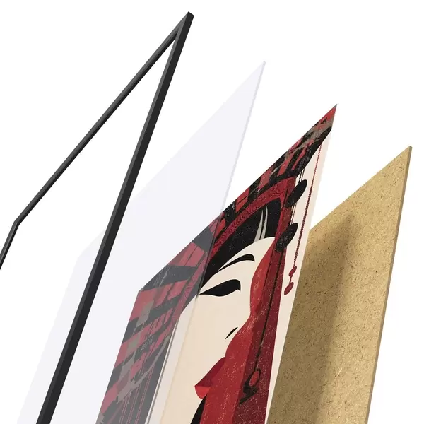 Il poster è composto da cornice, plexiglass, immagine stampata e supporto in truciolato. Il poster può essere immediatamente appeso alla parete grazie ai supporti sul retro.