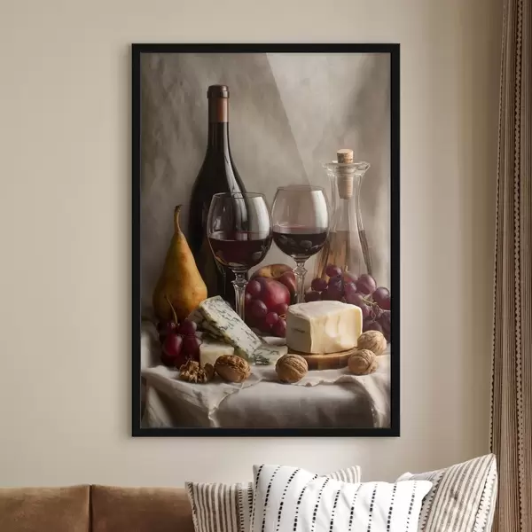 Poster natura morta con vino e formaggio f49002