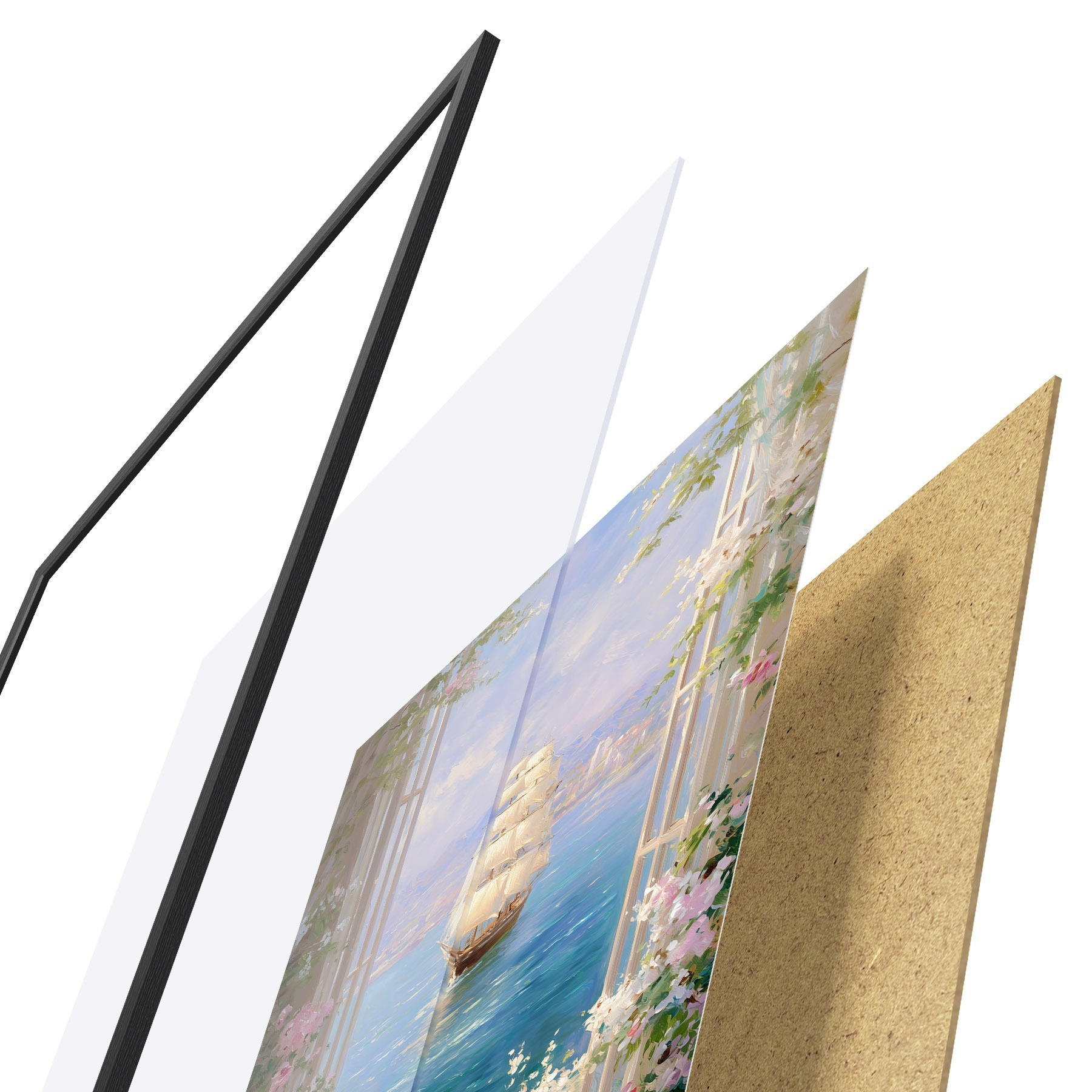 Il poster è composto da cornice, plexiglass, immagine stampata e supporto in truciolato. Il poster può essere immediatamente appeso alla parete grazie ai supporti sul retro.