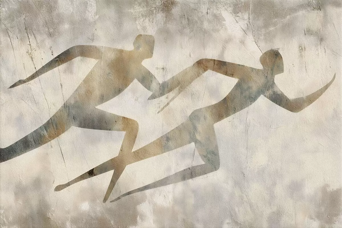 Poster astrazione di due figure in corsa Nr f49005