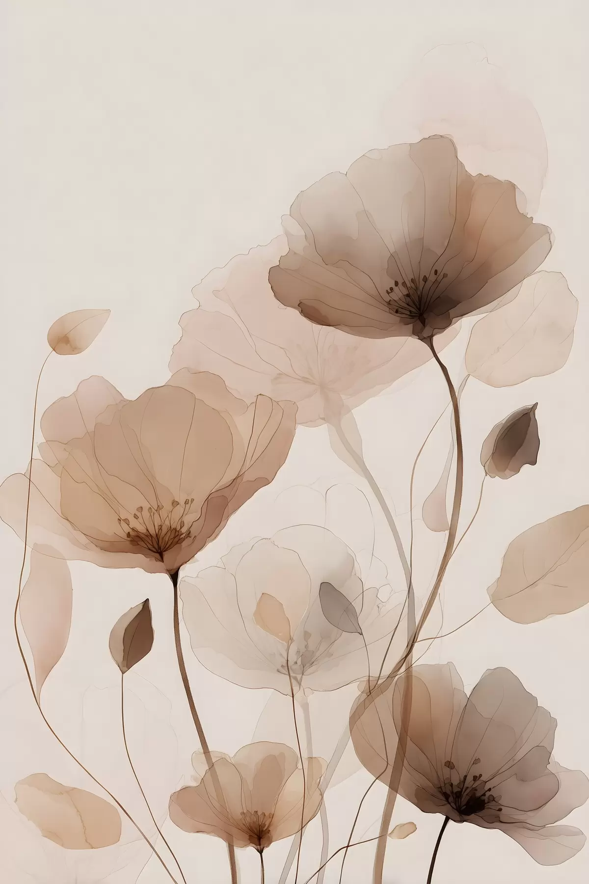 Poster fiori dipinti ad acquerello nei toni del marrone Nr f49007