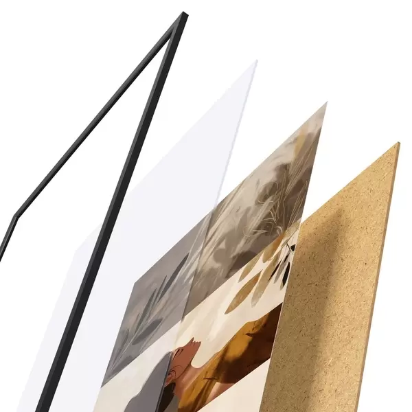 Il poster è composto da cornice, plexiglass, immagine stampata e supporto in truciolato. Il poster può essere immediatamente appeso alla parete grazie ai supporti sul retro.