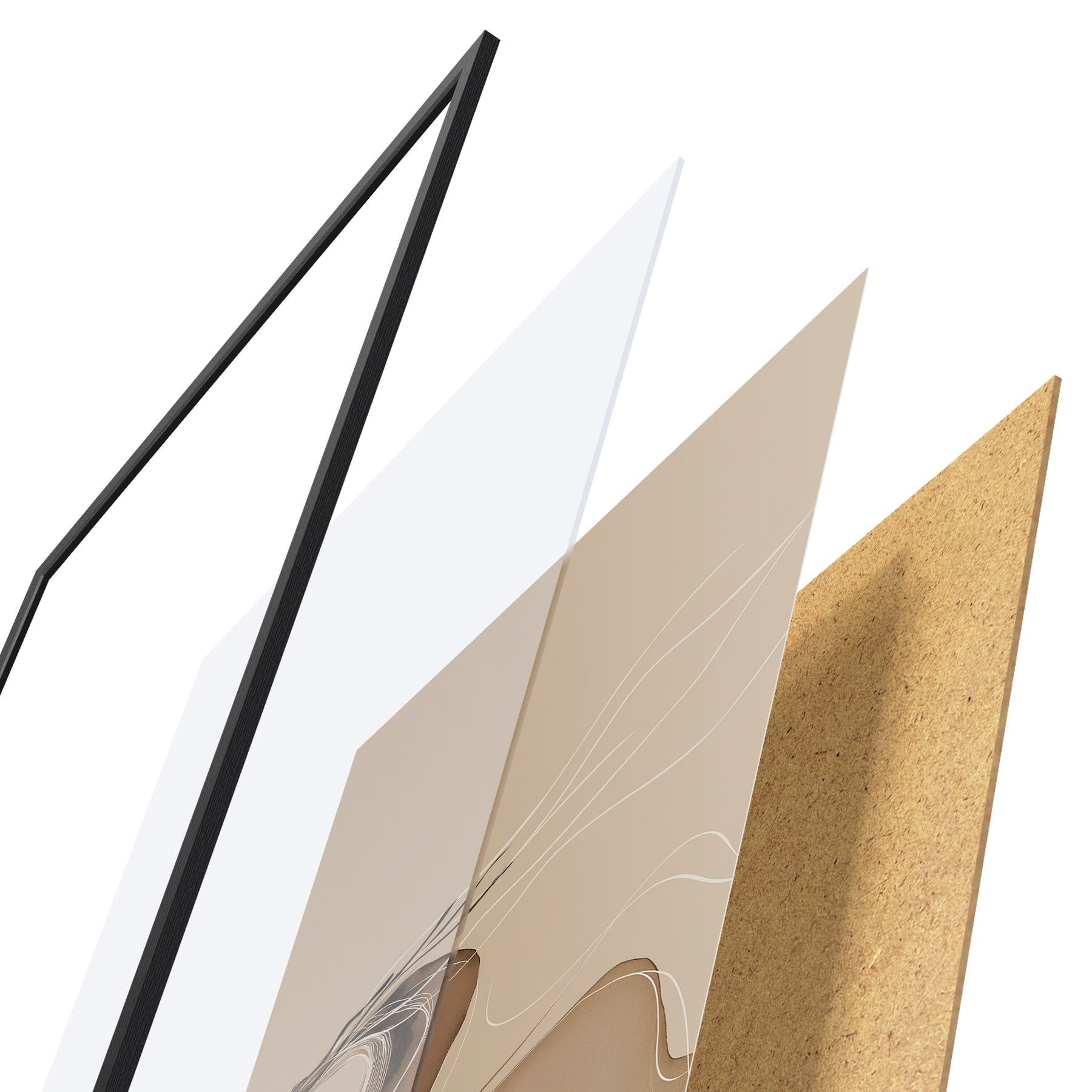 Il poster è composto da cornice, plexiglass, immagine stampata e supporto in truciolato. Il poster può essere immediatamente appeso alla parete grazie ai supporti sul retro.