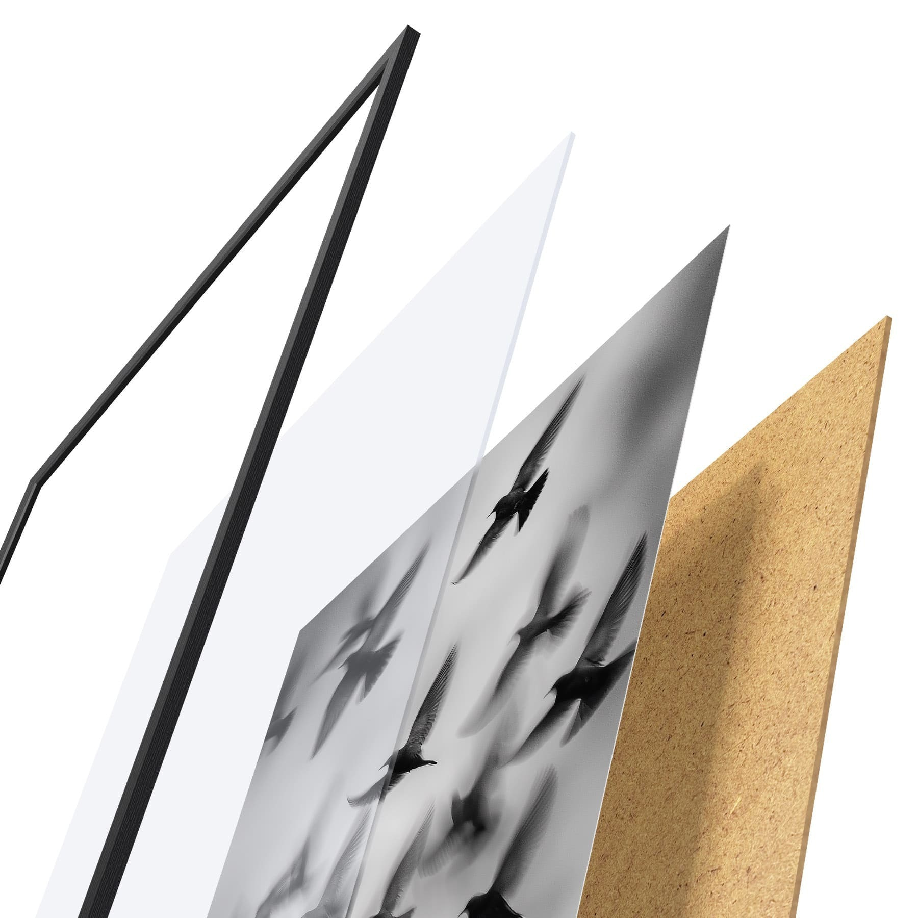Il poster è composto da cornice, plexiglass, immagine stampata e supporto in truciolato. Il poster può essere immediatamente appeso alla parete grazie ai supporti sul retro.