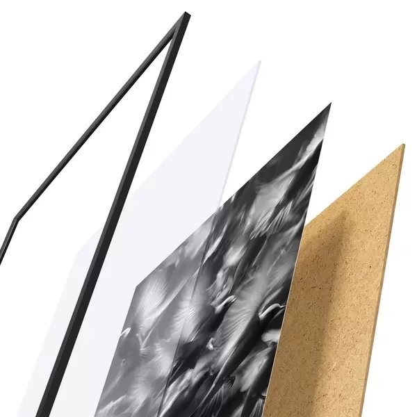 Il poster è composto da cornice, plexiglass, immagine stampata e supporto in truciolato. Il poster può essere immediatamente appeso alla parete grazie ai supporti sul retro.
