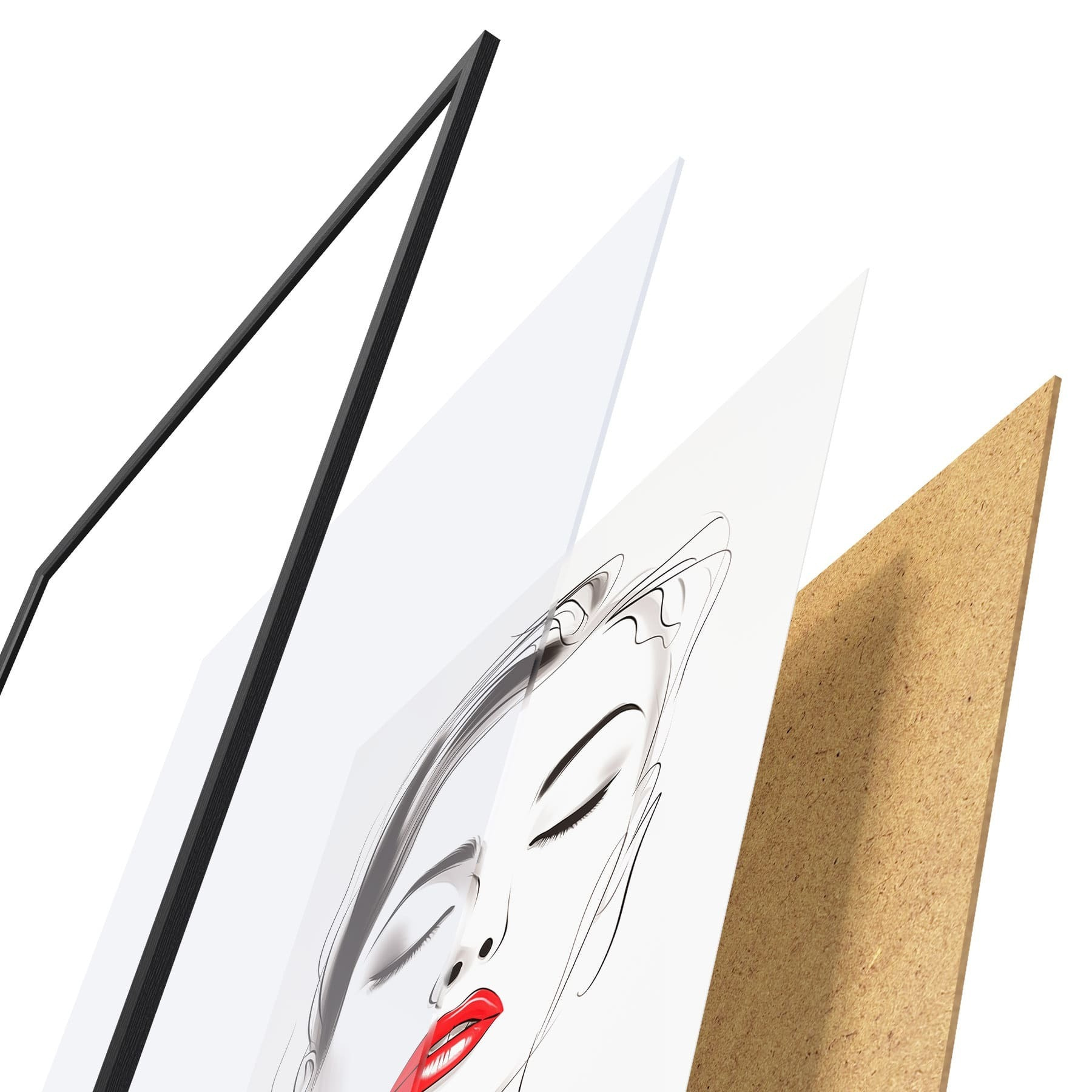 Il poster è composto da cornice, plexiglass, immagine stampata e supporto in truciolato. Il poster può essere immediatamente appeso alla parete grazie ai supporti sul retro.