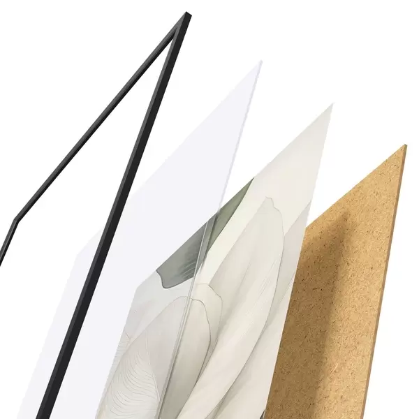 Il poster è composto da cornice, plexiglass, immagine stampata e supporto in truciolato. Il poster può essere immediatamente appeso alla parete grazie ai supporti sul retro.